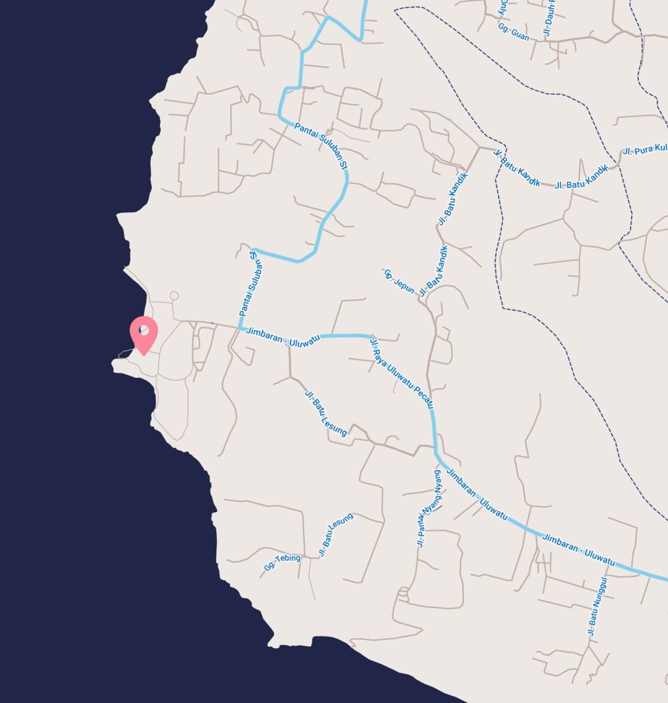 Uluwatu Temple is located in the southernmost part of the island, in Pecatu village, Badung regency. It is 20 km from Denpasar airport from which it can be reached in about 1 hour’s drive.